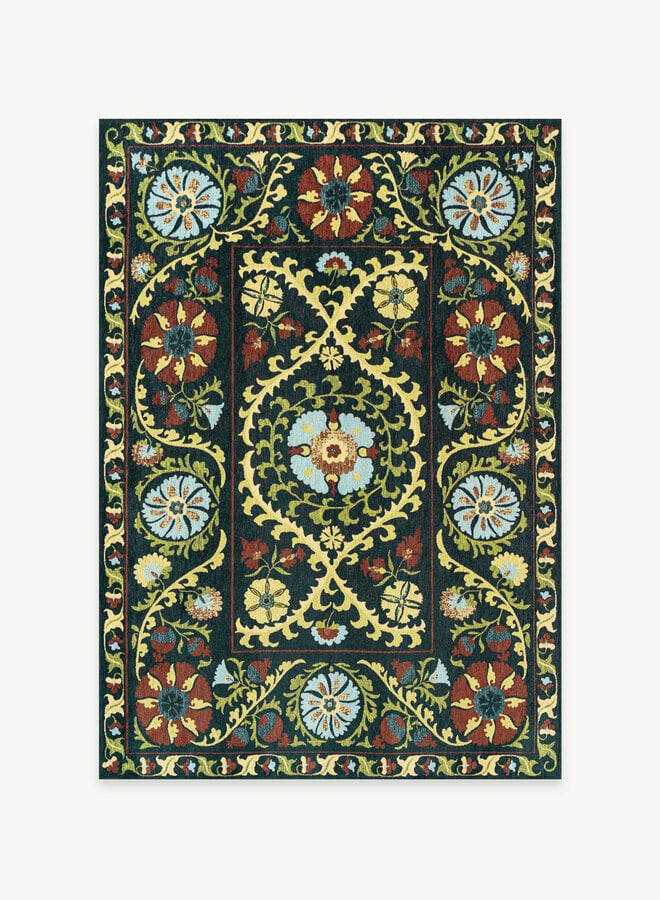 A vibrant reimagining of tradition. The Suzani collection takes inspiration from the symbolic colors and intricate designs of traditional Central Asian embroidery. Drawing from a rich tapestry of ancient motifs, our designers have carefully woven together elements from various classic Suzani patterns, creating a unique, contemporary interpretation. Each rug is infused with the cultural significance of its symbols—circles for eternity, pomegranates for fertility, and geometric shapes for protection—combined in bold, harmonious designs. With a palette that reflects the rich hues of tradition, the Suzani collection brings timeless beauty and modern style into your space, offering a sophisticated blend of history and innovation.