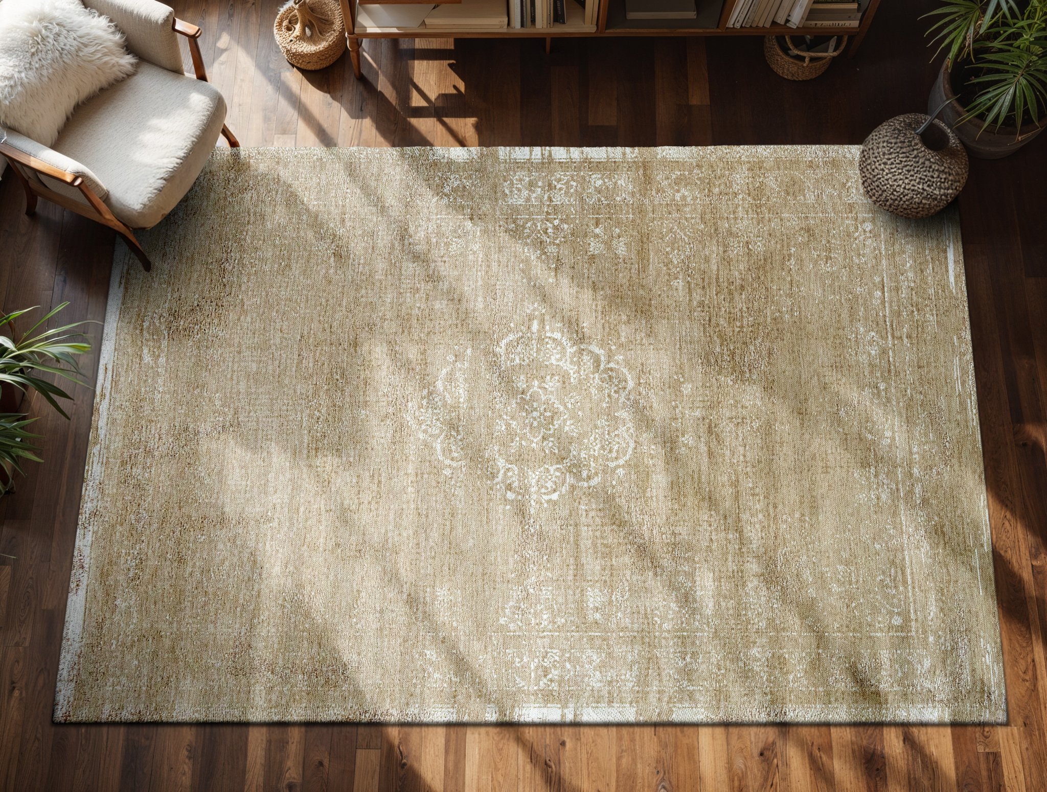 The Medallion design reimagines an ancient design with a modern twist. The central medallion—an iconic motif of timeless elegance—is carefully woven into a distressed framework, allowing you to bring a piece of history into your home. The intentional fading of pattern sections, paired with vibrant color accents, gives the rug a contemporary yet vintage appeal, bridging past and present. Crafted with over a century of expertise, each rug is woven on jacquard Wilton looms using luxurious cotton chenille yarns. Multiple layers of texture, intricate stitching, and distressing work together to create a true “vintage” look that speaks to both craftsmanship and design innovation.